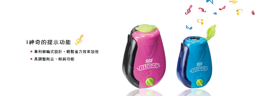? 专利棘轮式设计,轻松省力有用率 ? 具调解削尖、削钝功效 ? 圆形、三角形、六角型铅笔均适用